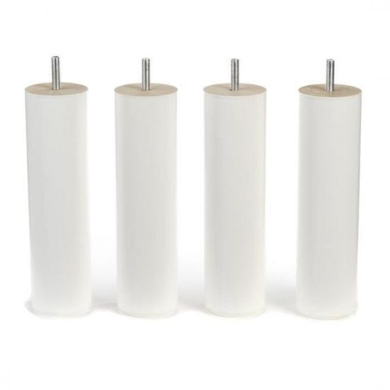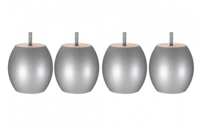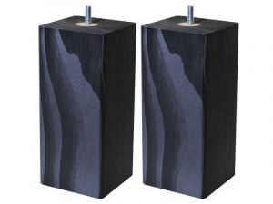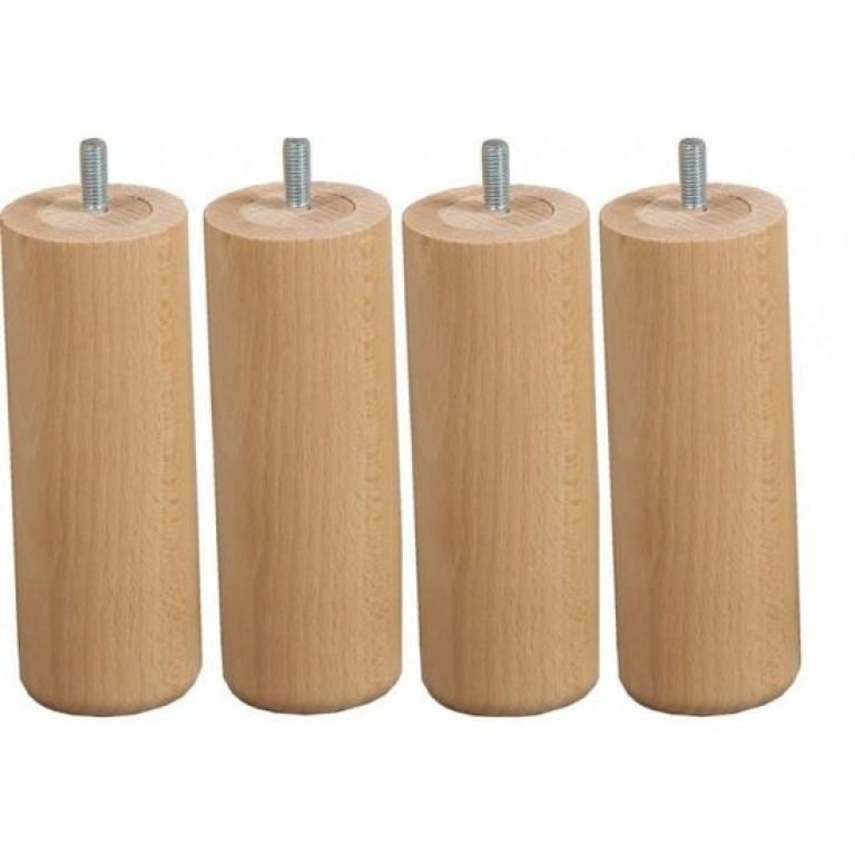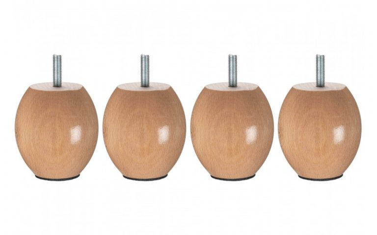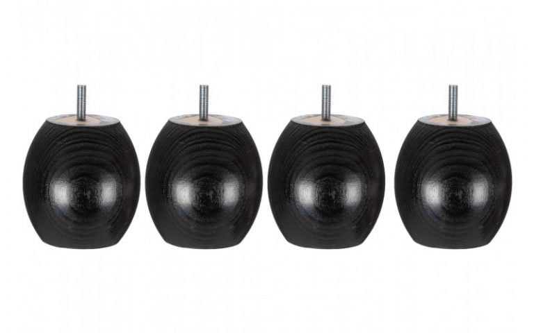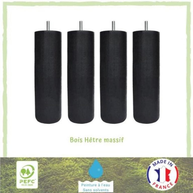 Il y a un jeu de pieds de 24,5 cm en bois d’hêtre massif noir, d’un diamêtre de 6,2 cm. Le lot de 4 coûte 17 euros.