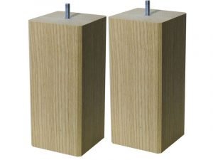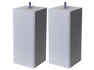 Le lot de 4 pieds pour sommier tapissier est en bois de chêne de couleur blanc laqué a 30 cm de hauteur. Il coûte 40 euros.